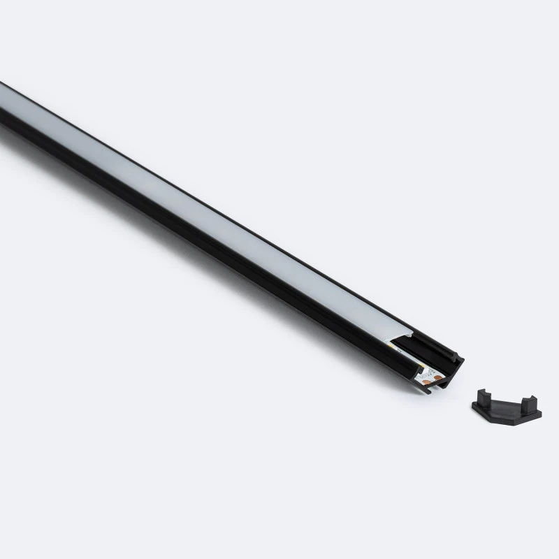 - 2 metre black aluminium corner profile for LED strips up to 12 mm with translucent cover.