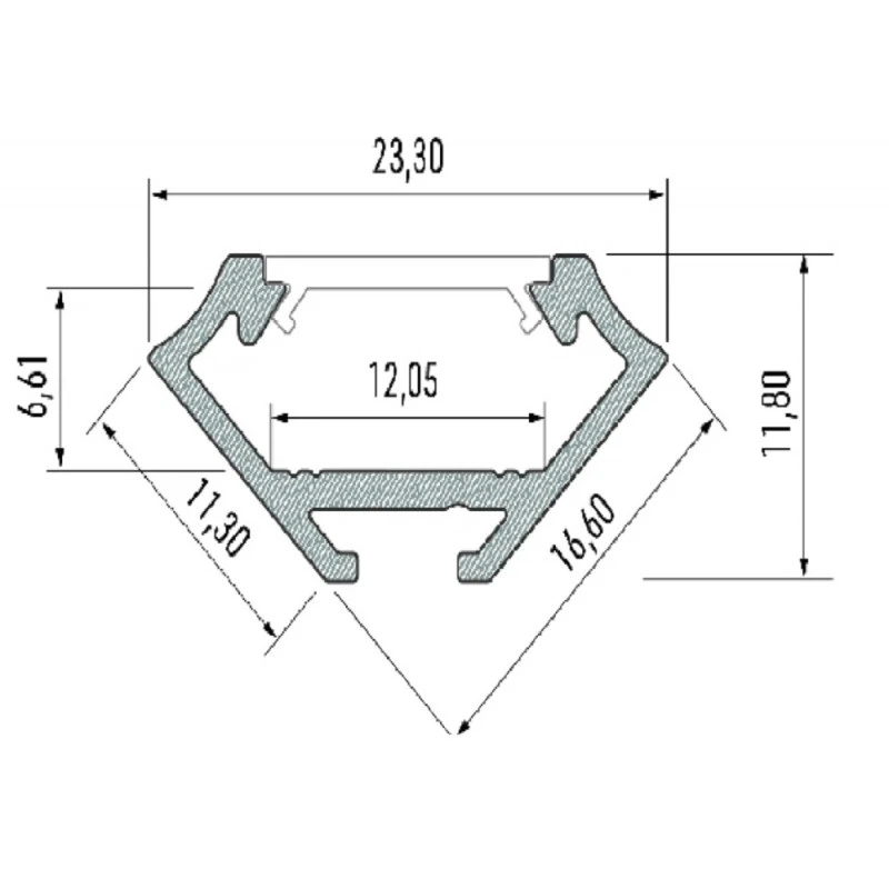 Overall – H 16.6 x W 23.3 x L 2000mm