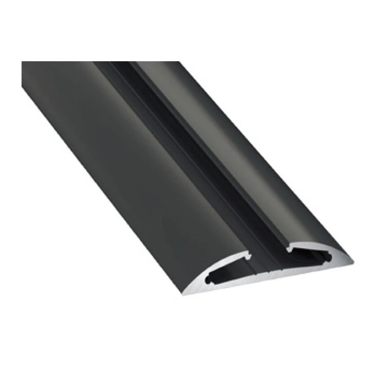 - 2 metre black semi-circular aluminium surface profile for double LED strips up to 12 mm with transparent cover.