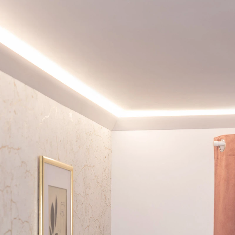 Designed to elevate your indoor aesthetics, this innovative moulding introduces an enchanting interplay of light, casting breathtaking decorative illuminations. With its purposeful design, it seamlessly integrates with your interiors, allowing for indirect lighting effects that captivate and enthrall.