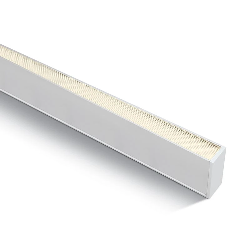 - 40W UGR19 Linear system with diffuser for surface or suspended installation, ideal for offices.