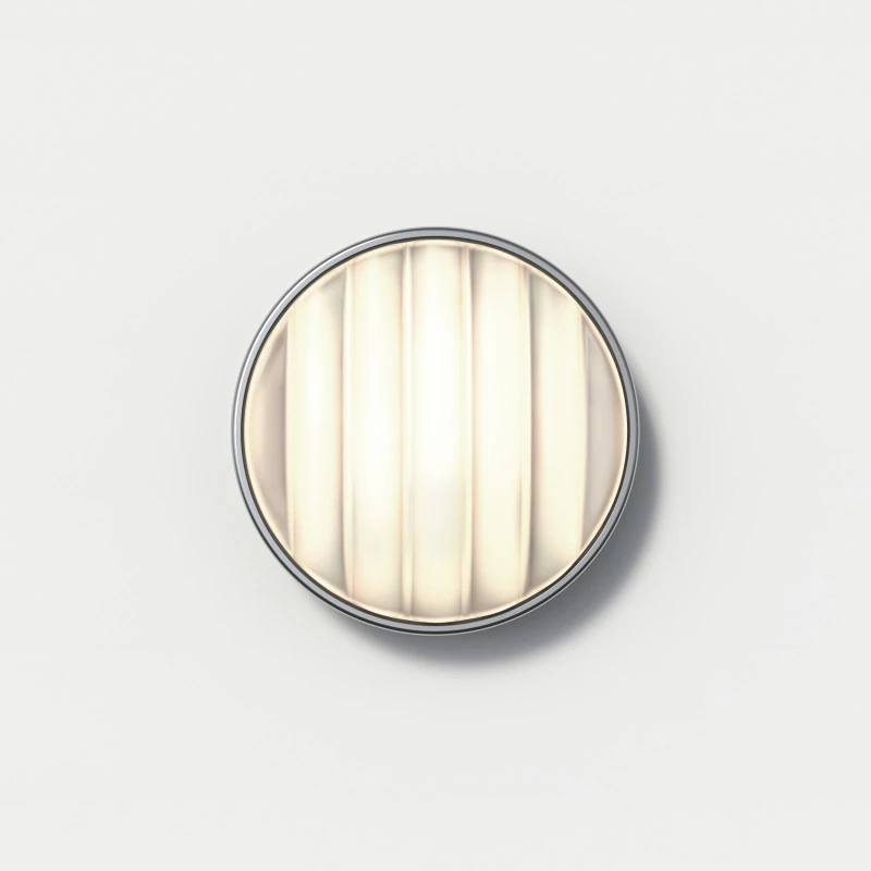 - Uniquely designed industrial look round bulkhead in a stainless steel finish with wide ribbed glass diffuser. Also ideal for bathrooms!