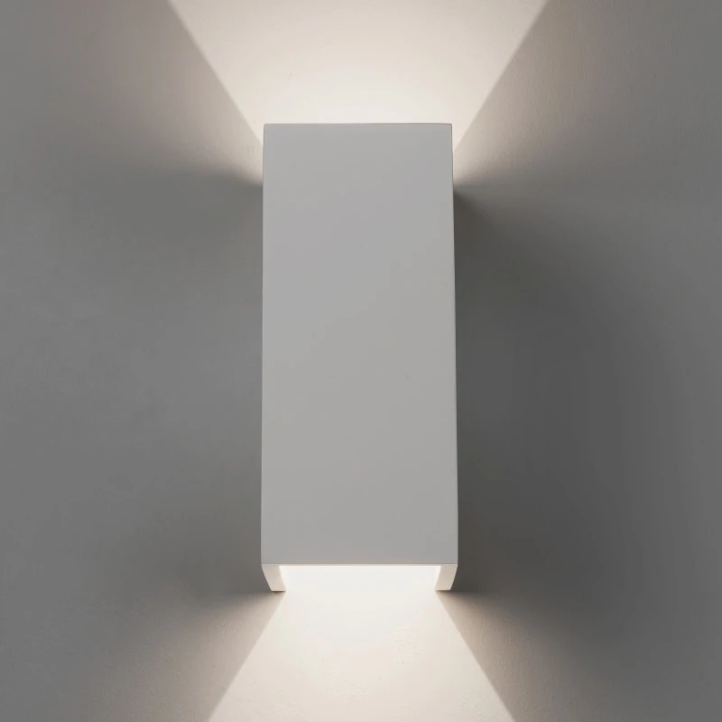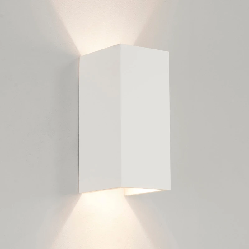 The Parma 210 Wall Light from Astro Lighting is smart and modern-looking with its simple vertically rectangular shape, and emits a pleasing up-and-down light from twin lamps. The Parma has a silky-smooth white plaster finish that is designed to be used bare, but if you need a specific colour you can also paint it with a high quality emulsion.