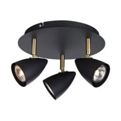 - Metal ceiling spotlight in a matt black finish with brass detailing