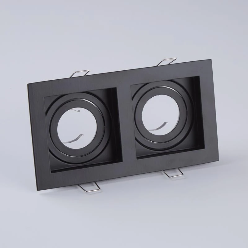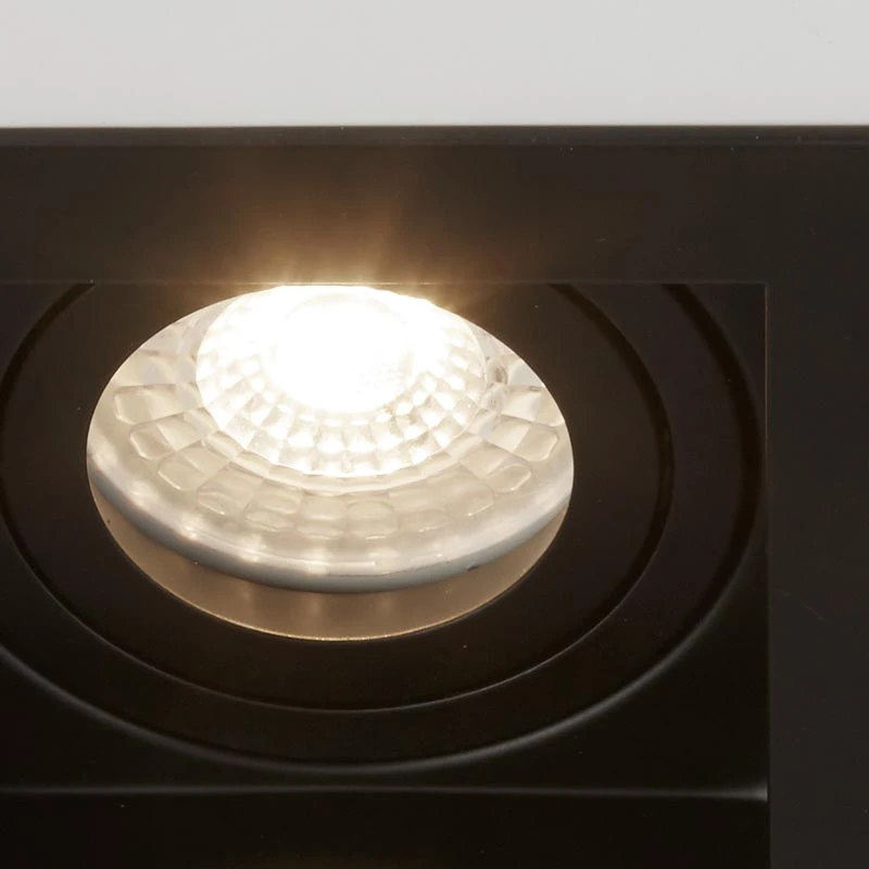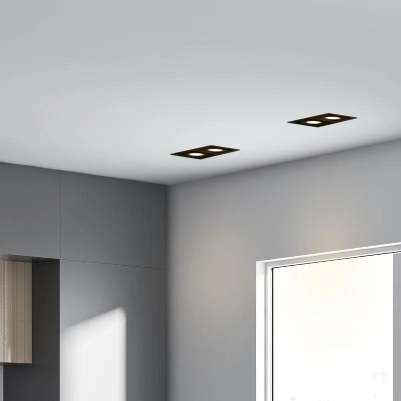 - This 2 light recessed downlight has a rectangular fascia with 2 adjustable spotlights in matt black finish.