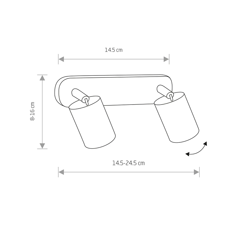 - Size: H 80 x L 245 x Dia (each light) 70mm