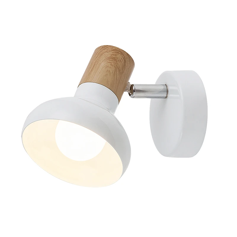 - A Nordic style spotlight with a white and beech-coloured metal spotlight head which is adjustable, allowing you to direct light where required and a circular backplate. This is ideal for modern or contemporary decors and a great addition to your bedroom, living room, dining room or hallway.