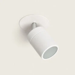 - Single light bathroom spotlight fitting in a white finish, features a circular backplate with adjustable spotlight head all in crisp white finish with frosted diffuser. Made from aluminium this recessed spotlight is suitable for use in bathrooms zones 1 and 2 and is adjustable, with a tilt of up to 90° and a rotation of up to 330° and is ideal for modern bathrooms.