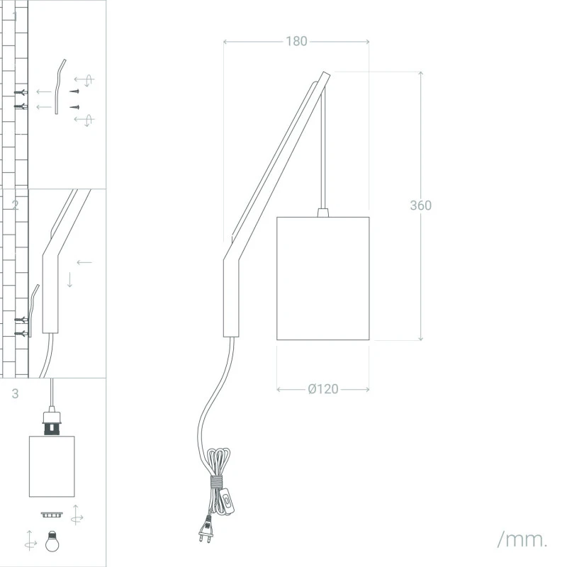 Overall – H 380 x W 150 x D 70mm