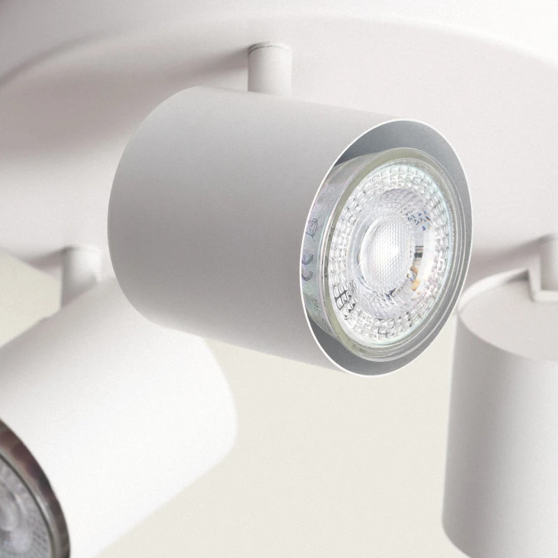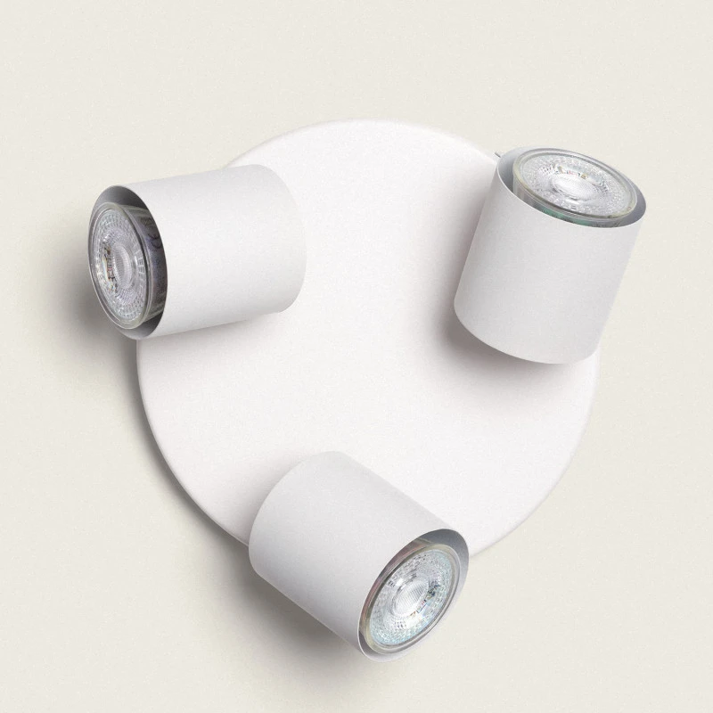 - The New Hampshire 3 light spotlight plate is made from metal and has a large circular ceiling plate with 3 adjustable spotlight heads, all in white finish. This compact design is both stylish and practical, the adjustable spotlights are both tiltable and have swivel adjustments allowing you to direct light where required. This is ideal for your kitchen, dining room or bedroom.