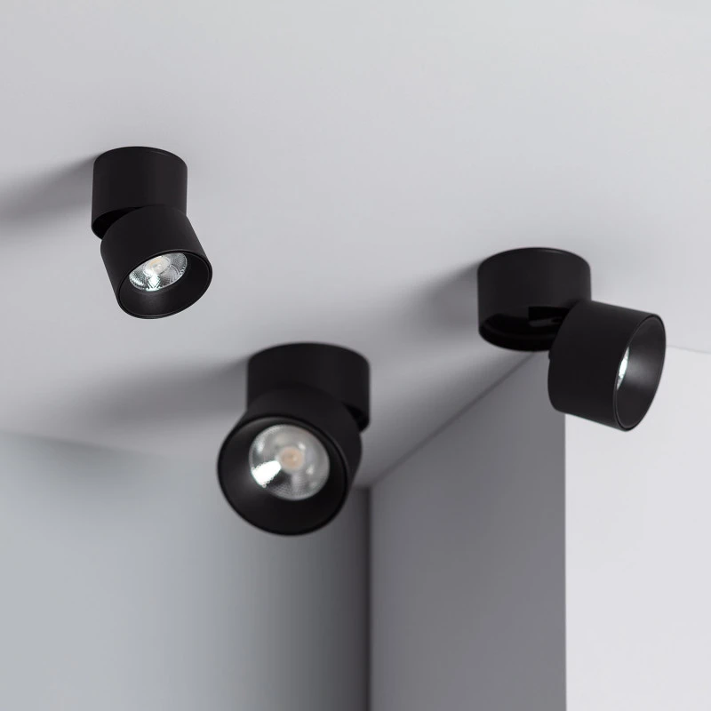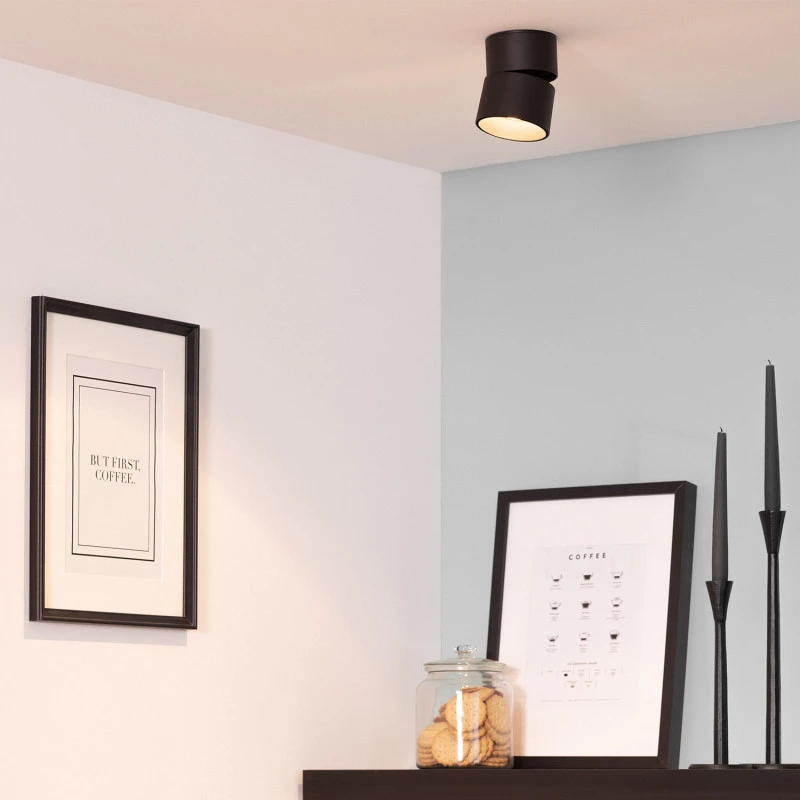 - Modern 30W LED single ceiling spotlight in a black finish with flip down lamp head for extra versatility in your home with daylight white LED light