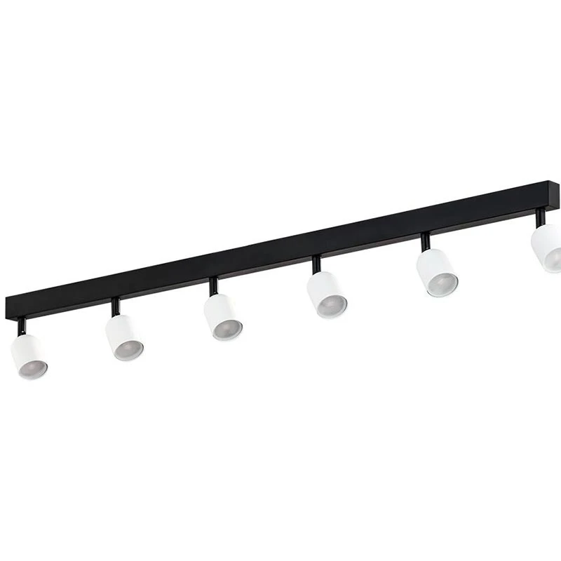 - Ceiling spotlight bar in a black and white finish with 6 adjustable spotlight heads for directional light
