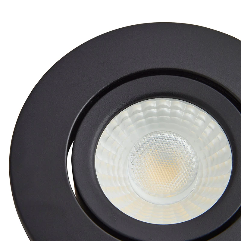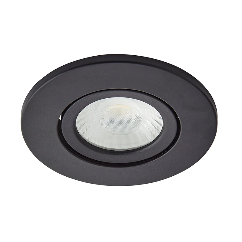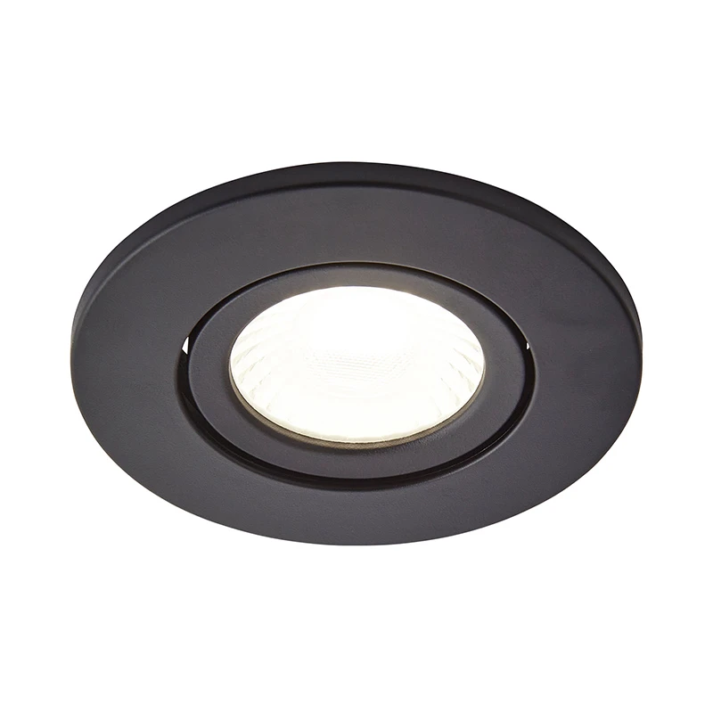 - Steel adjustable downlight with a satin black bezel with clear diffuser