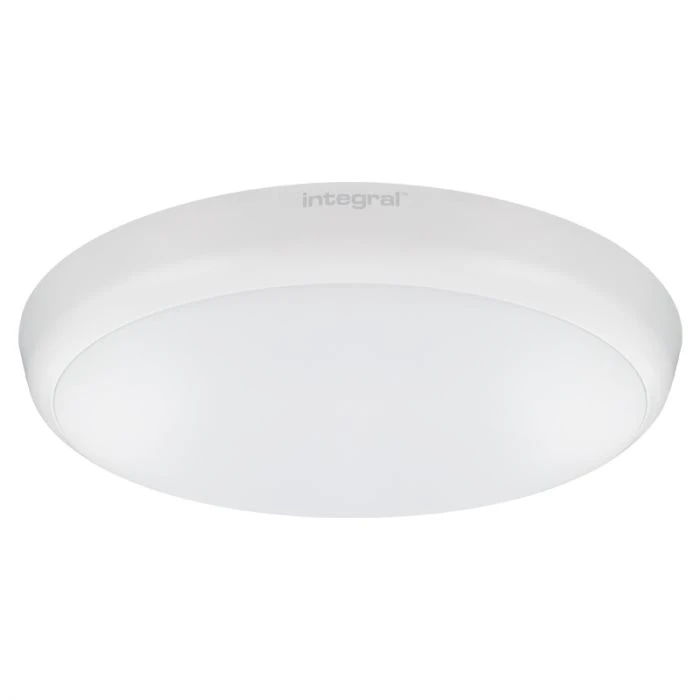 - 18W LED polycarbonate flush light on a white base with opal polycarbonate diffuser