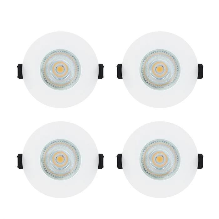 This pack of four fire-rated fixed downlights from Integral are the most economical way to purchase downlights. IP65 rated, they are fully weather-proof and can withstand damage from eternal corrosion. They include quick connectors which facilitate rapid installation, making them ideal for large-scale projects and developments. They are designed to deliver high quality light with a contemporary design, which is 10 times thinner than a typical downlight and sits almost flush, for a very pleasing appearance. Use with energy-saving LEDs for minimal maintenance costs and replacement, over time.