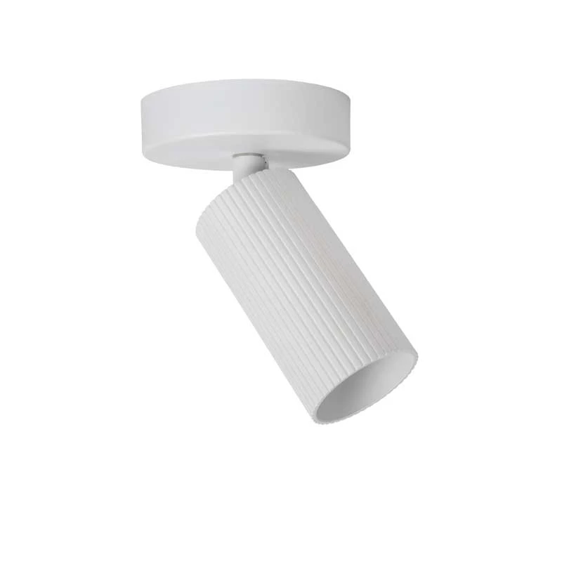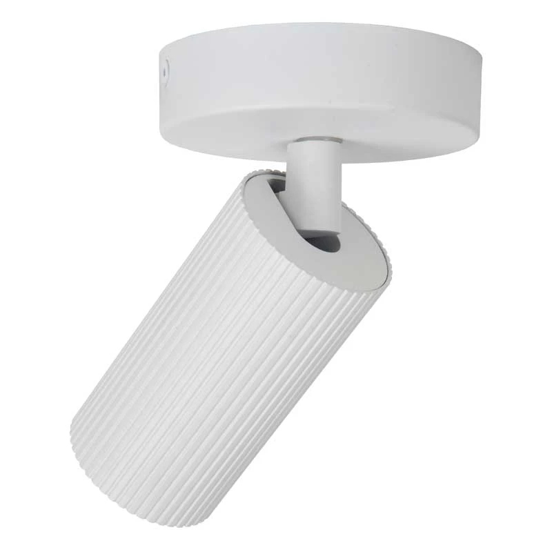 - Spotlight fitting in a white finish with adjustable spotlight head and ridged effect on shade