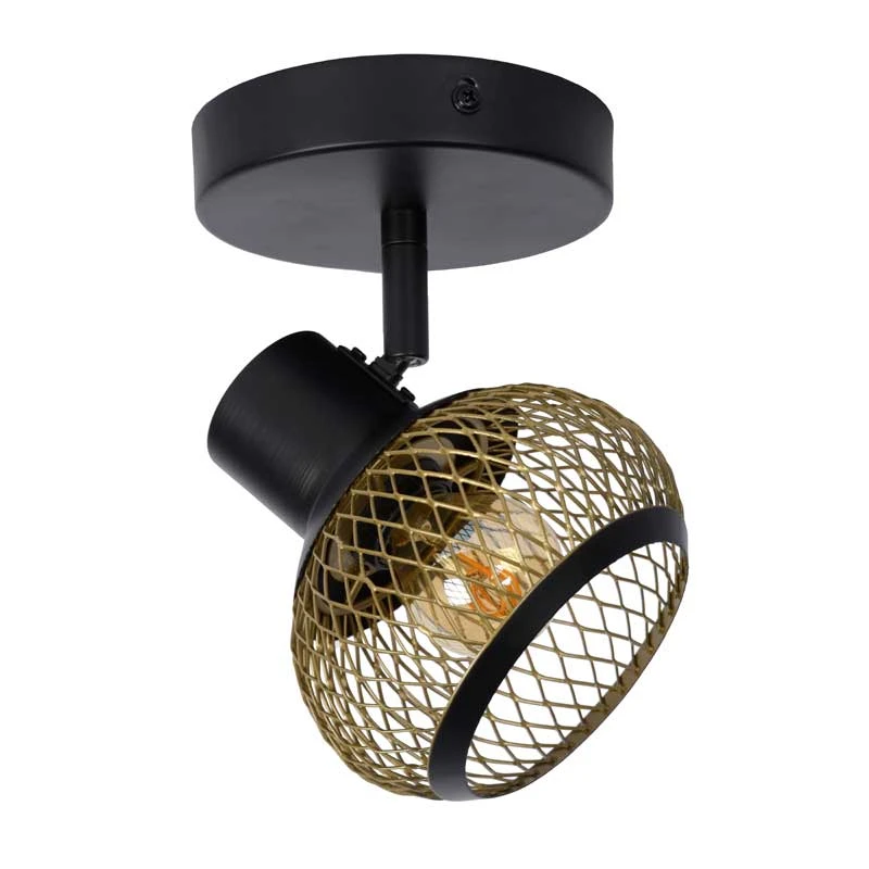 - Single spotlight in a black finish with matt gold wirework shade