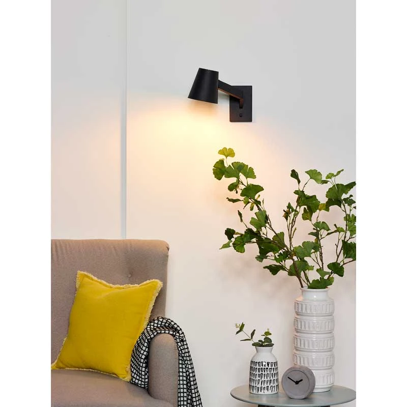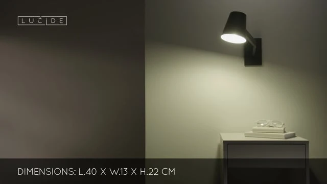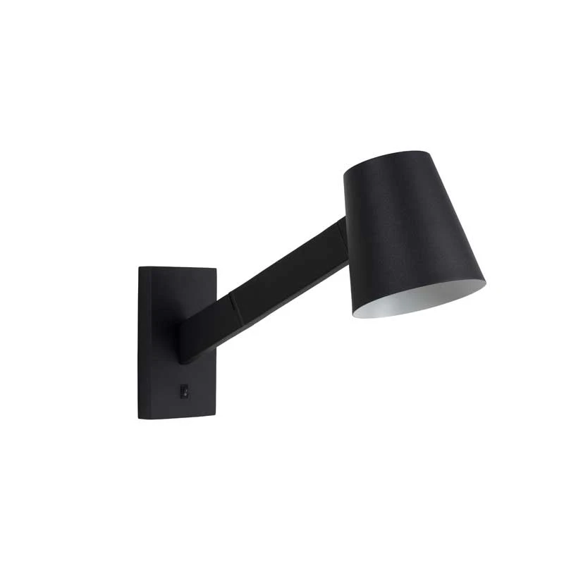 - Metal wall light in a black finish with adjustable head. Independent on/off switch on the back plate
