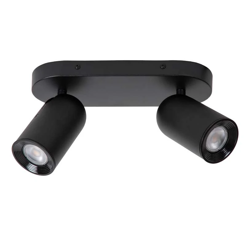 - Metal 2 light bar spotlight fitting in a black finish with adjustable spotlight heads