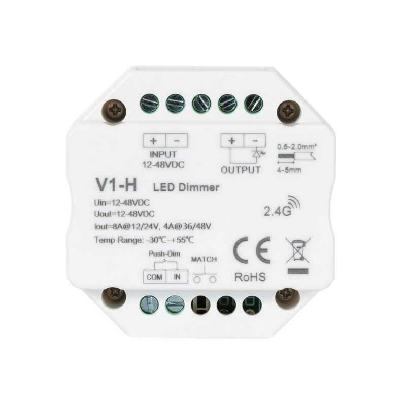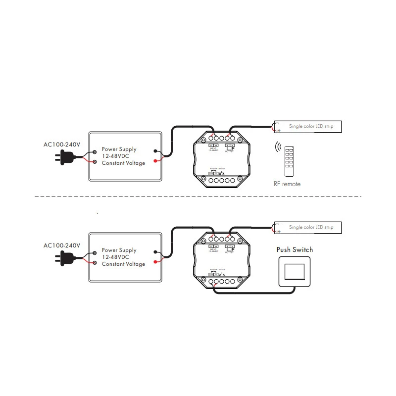 - RF dimmer 12/48V LED for single-colour LED strips.