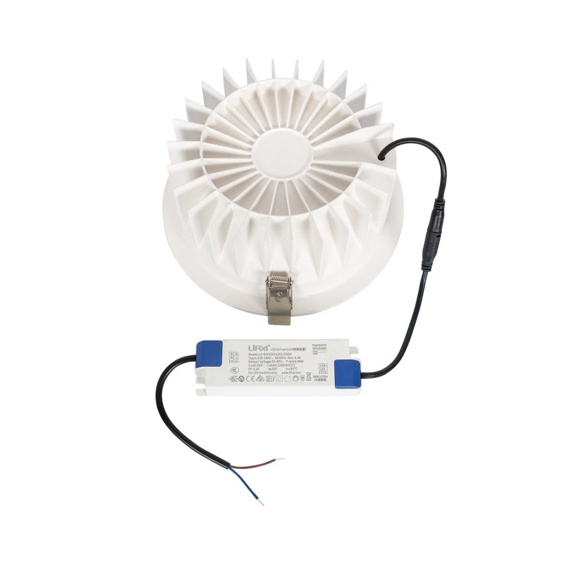 Slim Round 20W Microprismatic Selectable White LED Downlight Cutout 205mm LIFUD Driver – White