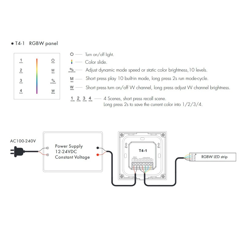 Wall Mounted Tactile Dimmer for RGBW RF LED Strips White